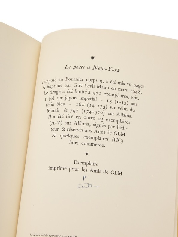Edition originale de la traduction par Guy Lévis Mano. - Exemplaire numéroté sur alfama. - Traces de colle dans les coins. Bords de la couverture légèrement émoussés.