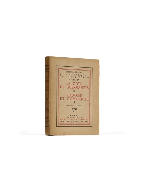 Ce second volume du cycle Guermantes, publié un an après le premier, marque un tournant : le décor mondain commence à se fissurer, laissant place aux obsessions du narrateur - le deuil, le désir, le vertige du temps. Les salons aristocratiques deviennent les antichambres du rêve, les personnages des effigies troublées. Albertine et Charlus s'installent au coeur du roman, prélude aux révélations de Sodome et Gomorrhe qu'il introduit. La fameuse scène du dîner chez les Guermantes y côtoie l'épisode des souliers rouges ou encore les premières hallucinations sensuelles autour d'Albertine, annonçant La Prisonnière. La parution du volume est attendue, et Proust ne ménage si ses efforts, ni sa plume, pour faire parvenir des exemplaires à ses proches, tout au long de cette fin d'année 1920, le plus souvent sur des exemplaires portant mentions d'éditions, comme ici - mais l'exemplaire Divoire est bien sur un exemplaire à la bonne date du 30 avril, ce que peu d'entre eux possèdent. On connaît les exemplaires suivants : À Jean Ajalbert, Céleste Albaret, Roger Allard, Walter Berry, Antoine Bibesco, Jacques-Emile Blanche, Léon Blum, Mme George Blumenthal, Jacques Boulenger, Marcel Boulenger, Alix Brizon, Louis Brun, Henry Céard, Raymond Clauzel, à la Duchesse de Clermont-Tonnerre, à Colette, Mme de Chevigné, Léon Daudet, Lucien Descaves, Robert Dreyfus, Gaston Gallimard, André Gide, Armand duc de Guiche, duc de Gramont, Bernard Grasset, Reynaldo Hahn, Lionel Hauser, Abel Hermant, Jacques de Lacretelle, Valery Larbaud, Berthe Lemarié, Paul Lombard, Charles Malexis, L. Martin-Chauffier, Clément de Maugny, Francis de Miomandre, John Middleton Murry, Robert de Montesqiou, Paul Morand, Robert Proust, Charles Régismanset, Henri de Régnier, Marie de Régnier [Gérard d'Houville], Jacques Rivière, Louis de Robert, Henri Rochats, Jules Romains, Robert de Rothschild, André Salmon, Sydney and Violet Schiff, Jean Schlumberger, Paul Seippel, Paul Souday, Princesse Soutzo, John C. Squire, Madame Straus, Gustave Tronche, Fernand Vandérem, Jean-Louis Vaudoyer. Notre exemplaire est adressé à Fernand Divoire, journaliste, critique et poète, qui participa activement à la vie littéraire du temps (dans Comoedia, Le Figaro, Le Gaulois ou L'Intrinsigeant,) et dont la bienveillance à l'égard de Proust fut constante. Bon exemplaire, cité alors comme «envoi inédit» dans le Bulletin d'informations proustiennes (n° 51, 2021, p. 170). Mention de 2e édition.