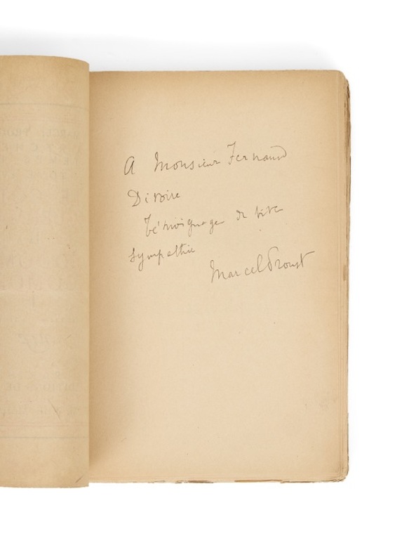 Envoi signé à Fernand Divoire Paris, Éditions de la NRF, (30 avril) 1921. 1 vol. (140 x 195 mm) de 282 p. et [1] f. Broché. Édition originale. Envoi signé : « À Monsieur Fernand Divoire, témoignage de vive sympathie, Marcel Proust ».