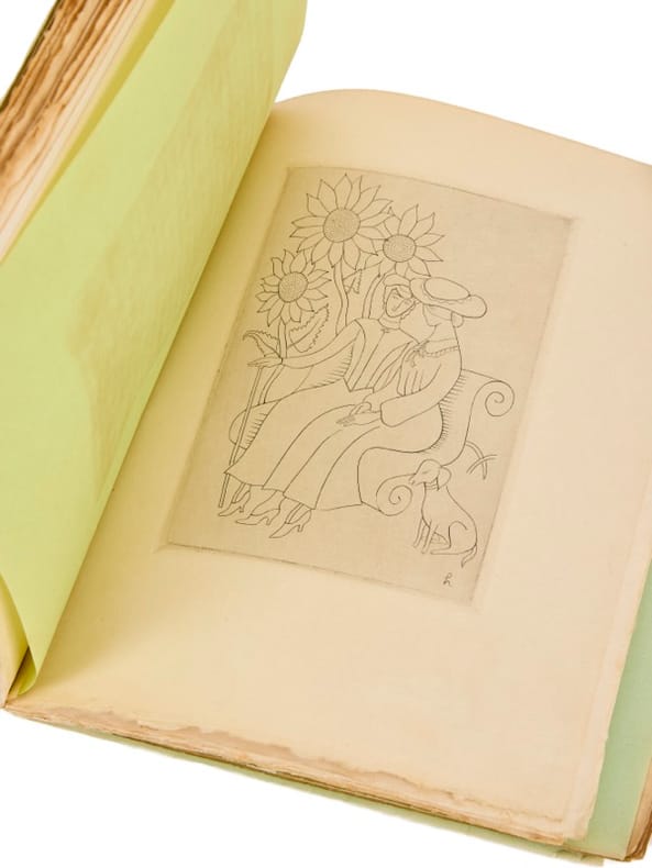 La Renaissance.1942.In-8 en maroquin tilleul avec suites dans écrin et étui bordé doublé de feutrine.Illustrations de Mariane Clouzot.Ex.42.Suites en couleurs.Très jolie reliure avec figures de fleurs en maroquin chataigne soulignées d'une bordure de même couleur.Bel exemplaire avec dos fané.Couverture d'origine et dos conservés.