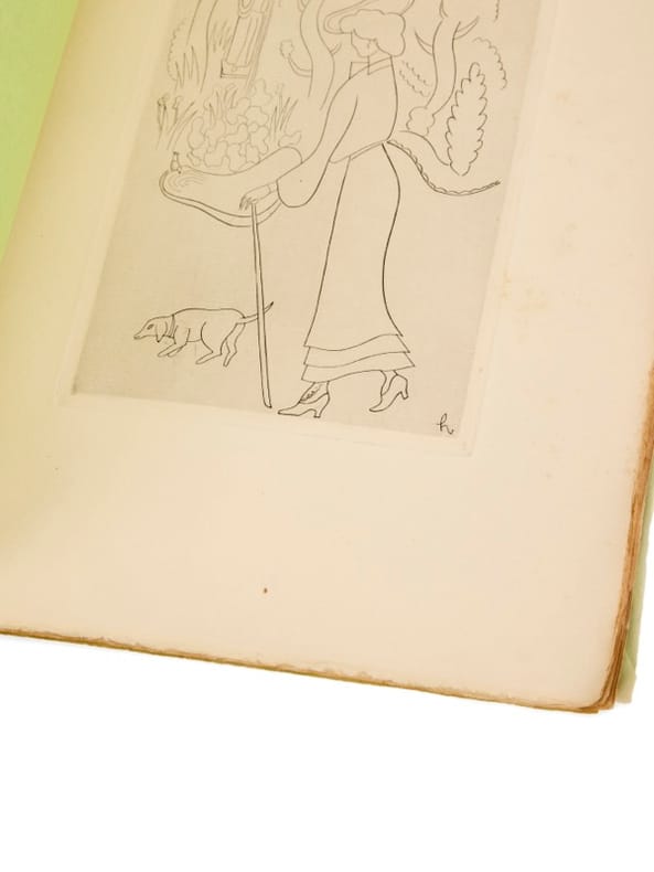 Un des 15 de tête sur japon avec suite Paris, Émile-Paul frères, 1923. 1 vol. (165 x 220 mm) de 85 p., [3] et 1 f. + 7 planches. Broché, sous couverture verte rempliée. Édition originale, illustrée de 8 gravures de Valentine Hugo [Jean Hugo]. Un des 15 premiers exemplaires sur vieux japon (n° 3), avec une suite des illustrations tirées sur vergé.