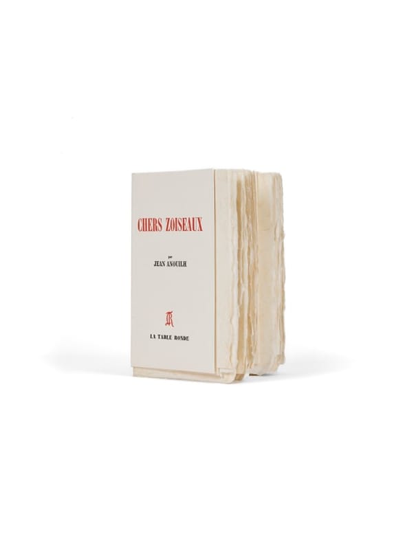 Paris La Table Ronde 1977. 213 pp. In-12. Broché. En très bon état. 1 volume. "Chers zoiseaux est une pièce de théâtre de Jean Anouilh créée à la Comédie des Champs-Élysées de Paris le 4 décembre 1976. Elle fait partie des Pièces farceuses avec La Culotte (1978), Épisode de la vie d'un auteur (1948) et Le Nombril (1981). Le premier titre était : les Oiseaux font caca partout".ÉDITION ORIGINALE limitée à 77 exemplaires numérotés. Celui-ci est un des 60 exemplaires numérotés sur Hollande Van Gelder.