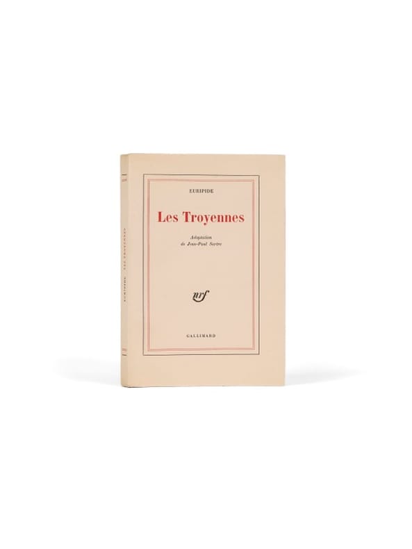 Création à Paris,musique Jean Prodomides, décors Jean Tsaroukis. Avec Jean Martinelli (Poséidon), Françoise Le Bail (Pallas Athena), Éléonore Hirt (Hécube), Jean-Pierre Bernard (Talthybios), Judith Magre (Cassandre), Nathalie Nerval (Andromaque), Yves Vincent (Ménélas), Françoise Brion (Hélène). Pendant l'été 1964, Sartre écrit à Rome une adaptation de la célèbre pièce d'Euripide, construite comme un oratorio sur le thème de la guerre et de sa condamnation. La pièce est montée au théâtre national populaire (TNP) le 10 mars 1965, dans une mise en scène Michel Cacoyannis. Dans une interview donnée à Gisèle Halimi pour l'hebdomadaire yougoslave NIN et publiée par la revue Bleu nuit (n°14, nov. 1988), Sartre indique : «Pour que notre public puisse ressentir les vérités profondes exprimées par Euripide, il était nécessaire de dramatiser la pièce et de modifier certains personnages. » Trois ans après la fin de la guerre d'Algérie, Sartre stigmatise les guerres de conquête et dresse une véritable accusation contre les guerres coloniales.