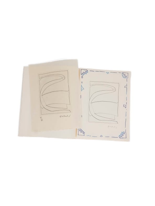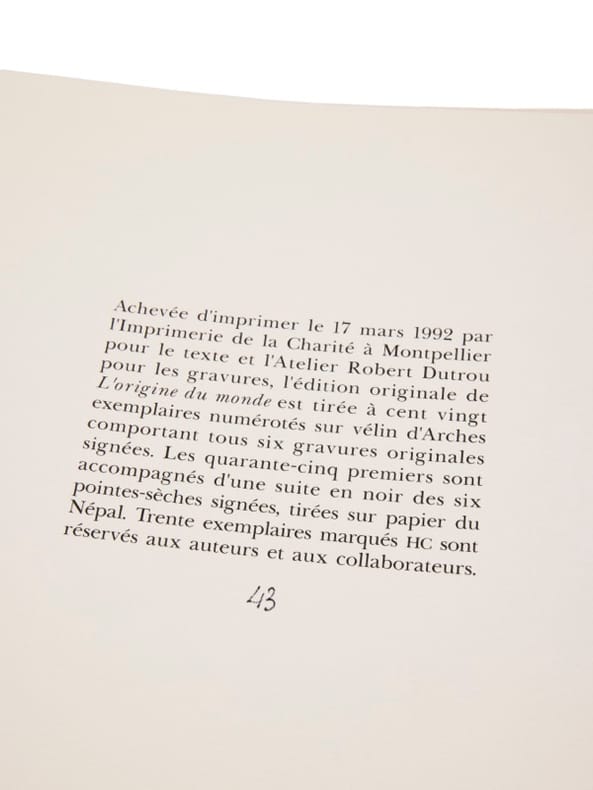 Exemplaire de tête avec les 6 gravures signées Paris, Fata Morgana, (17 mars) 1992. 1 vol. (290 x 380 mm) en feuille sous couverture à rabats, emboîtage de toile mauve. Édition originale. Tirage à 120 exemplaires numérotés sur vélin d’Arches comportant 6 gravures originales (pointe-sèche et aquatinte) en couleurs tirées par Robert Dutrou, signées par Pierre Alechinski. Un des 45 premiers exemplaires, les seuls à contenir une suite en noir des gravures, toutes également signées, sur papier Népal.