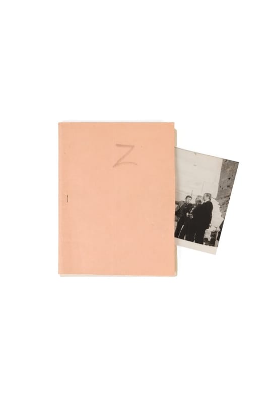Le film de Costa-Gavras raconte, en reprenant le roman de Vassilis Vassilikos, la période d'« incubation » du fascisme en Grèce, avant que la dictature militaire des colonels ne s'empare du pays. Le cinéaste accumule les témoins à charge, les pièces à conviction de ce brûlant dossier politique et déguise son réquisitoire en polar, sans négliger le suspense ni la tension dramatique. Z sera le troisième long métrage de Costa-Gavras, et son premier « film-dossier », un genre dont il va devenir le spécialiste dans la décennie suivante avec des fictions politiques conçues comme des films policiers ou des thrillers (de L'Aveu à Amen en passant par Missing). C'est Semprun qui se chargera de l'adaptation et des dialogues - à la demande de Costa-Gravas, faisant suite à celle de Vassilikos. Il s'agit ici de son jeu personnel de l'adaptation qu'il en proposa. Semprun connaissait Costa-Gavras sans jamais avoir travaillé avec lui : « nous faisions partie d'un même cercle d'amis où l'on retrouvait Yves Montand et Simone Signoret. Costa-Gavras avait été impressionné par le livre de Vassilikos sur ce député grec de gauche éliminé par le pouvoir militaire. Il m'a proposé de l'adapter avec lui. Nous avons respecté l'intrigue mais modifié la structure du récit. Dans le livre, il y avait beaucoup de monologues intérieurs, de lyrisme. Costa voulait donner au film un aspect plus policier [...]. Quand le scénario a été écrit, en 1968, nous n'avons trouvé aucun producteur. Nous avons reçu de vagues promesses ainsi qu'une petite avance, qu'il nous a d'ailleurs fallu rendre car ce que nous avions écrit déplaisait. Par chance, Mai 68 est passé par là, et la politique, qui n'intéressait personne dans le métier, a commencé à être mieux perçue. Le scénario a finalement pu être tourné sans la moindre modification. Mais Jacques Perrin a dû tout de même remuer ciel et terre pour monter la coproduction. Et Z a été un énorme succès dans le monde entier... » (entretien avec Olivier de Bruyn, Télérama, juin 2011). Vassilikos avait fait parvenir un exemplaire à Semprun, dès l'été 1967, ainsi dédicacé : « à Jorge Semprun, la guerre commence. Avec toute mon amitié et mon estime. Vassilis Vassilikos ». Sitôt la proposition de Costa-Gavras acceptée, Semprun se met au travail de l'adaptation, à l'automne 1967. Elle sera peaufinée à plusieurs reprises en 1968, avant d'être tournée en fin d'année et de sortir sur les écrans le 26 février 1969. Costa-Gavras avait découvert le roman de Vassilikos lors d'un séjour en Grèce. Dès son retour, il obtient une avance de la United Artists et propose à Semprun d'écrire l'adaptation. Mais la United Artists, jugeant le scénario trop « politique », se retire du projet ; Costa-Gavras s'adresse alors à Éric Schlumberger et à Jacques Perrin - qu'il connaît depuis le film Compartiment tueurs de 1965 -, qui assurent alors une partie du financement et utilisent leurs contacts, en particulier en Algérie, où le film sera tourné puisque la dictature des colonels rendait évidemment impossible le tournage en Grèce. Le film croulera sous les distinctions : Oscar du meilleur film en langue étrangère, Grand Prix spécial du jury (à l'unanimité) du Festival de Cannes, Oscar du meilleur montage, Golden Globe du meilleur film en langue étrangère, Prix d'interprétation masculine du Festival de Cannes (pour Jean-Louis Trintignant), British Academy Film Award de la meilleure musique de film, New York Film Critics Circle Award du Meilleur réalisateur et du meilleur film, National Award du meilleur film, Prix Edgar-Allan-Poe du meilleur scénario de cinéma... En tête, tirage original argentique d'une photographie représentant Jorge Semprun et Yves Montand, en Grèce, lors du premier voyage des deux hommes dans ce pays : la dictature des colonels, dénoncée dans Z, vient de prendre fin en juillet, le 23 juillet. Quatre mois plus tard, le 8 décembre, un référendum est organisé pour le maintien de la république, mise en place à la fin de la dictature des colonels : la Troisième République est confirmée et les élections présidentielles auront lieu le 18 décembre. Ni Semprun ni Montand, très engagés, ne pouvaient manquer ce moment. La photographie est titrée, au verso, de la main de Semprun « Athènes, décembre 1974 ». Cachet « bibliothèque Jorge Semprún » au verso de la photo et aux feuillets liminaires du cahier ; le document est daté en fin, «Ivry-la-Bataille [Eure] et Paris, 1967». Exceptionnel ensemble.