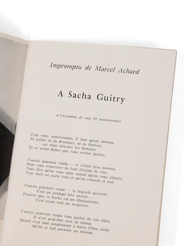 Programme signé par les acteurs Paris, 1960. 1 plaquette (135 x 180 mm), non paginée. Le programme est signé par plusieurs des artistes de la pièce dont André Luguet, Louis Velle, Régine Lovi…
