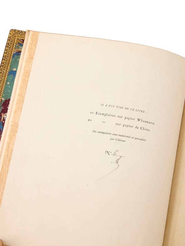 Edition originale, un des 10 exemplaires numérotés sur Whatman et paraphés par l'éditeur, tirage de tête. Reliure en demi maroquin chocolat à coins, dos à cinq nerfs, date dorée en queue, plats de papier marbré, gardes et contreplats de papier à la cuve, fragiles couvertures parcheminées conservées (comportant de discrètes et habiles restaurations), tête dorée, reliure signée Goy & Vilaine. Contributions de Victor Hugo, Stéphane Mallarmé, Charles Cros, Frédéric Mistral, Paul Arène, Théodore de Banville, Léon Cladel, Jules Claretie, François Coppée, Léon Dierx, Anatole France, Albert Glatigny, José-Maria de Heredia, Arsène Houssaye, Jules Janin, Sébastien-Charles Leconte de Lisle, Catulle Mendès, Albert Mérat, Sully Prudhomme... Ouvrage illustré, en frontispice, d'un portrait de Théophile Gautier par Bracquemond. Dernière garde partiellement froissée. Très bel exemplaire, à toutes marges, parfaitement établi. - Photographies et détails sur www.Edition-Originale.com -