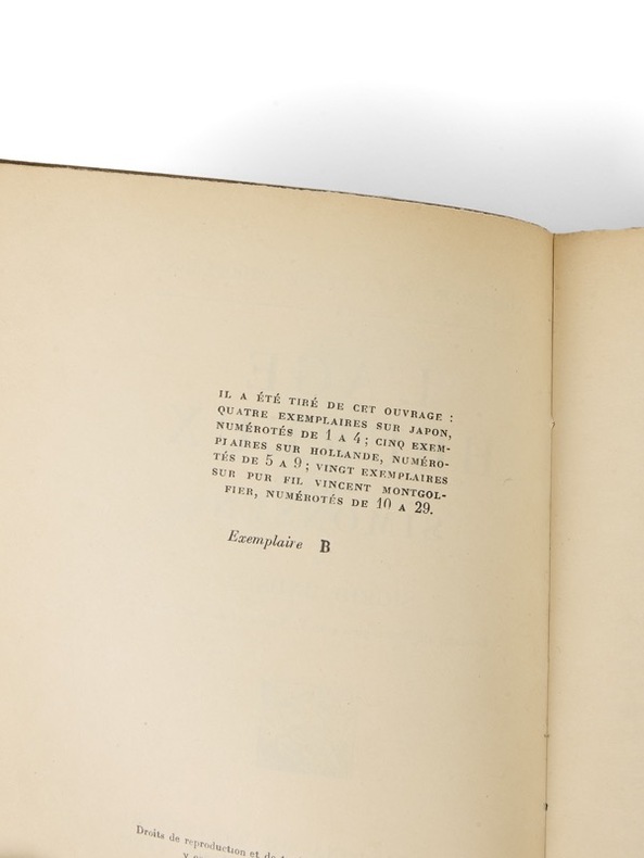 Rare exemplaire de tête sur japon Paris, Éditions du Sagittaire, coll. «La Revue Européenne», (23 juin) 1926. 1 vol. (155 x 180 mm) de 212 p. et [2] f. Broché, à toutes marges. Édition originale de la traduction par V. Vindé et G. Sautreau. Un des 4 premiers exemplaires sur japon, celui-ci hors commerce (n° B).