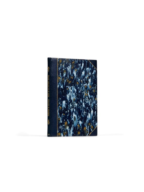 Deuxième recueil de Banville, joliment établi Paris, Poulet-Malassis & de Broise, (juin) 1857. 1 vol. (115 x 170 mm) de 29 p. et [1] f. Demi-maroquin bleu à grains longs et à coins, dos lisse orné de fleurons, titre doré, date en pied, filet doré sur les plats, tête dorée, couvertures et dos conservés (reliure signée de Semet et Plumelle). Édition originale. Belle impression en caractères italiques sur vergé, imprimée à 400 exemplaires sur hollande.