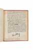 Mercure De France - A.Sauton Paris 1895-1884 2 ouvrages reliés en 1 volume in-8 ( 220 X 140 mm ), demi chagrin ébène, dos à nerfs orné de filets dorés. EDITIONS ORIGINALES. Le premier volume possède un envoi autographe signé de Léon BLOY: "A mon cher Alexandre ROY. Ce bouton arraché à la culotte de Madame HELLO. Léon BLOY."- Ici on assassine les grands Hommes. Paris, Mercure de France, 1895. 32 pages, premier plat de la couverture conservé. Edition originale tirée à 252 exemplaires, celui-ci des 243 sur papier teinté ( non numéroté, aucun exemplaire ne l'est ). L?ouvrage contient un portrait et un fac-similé d'autographe d'Ernest HELLO. L'ouvrage est à la mémoire de son ami Ernest HELLO, mort 10 ans plus tôt. L'ouvrage sera inclus dans Belluaires et Porchers en 1905.- Le révélateur du globe. Christophe Colomb et sa béatification future. Paris, A. Sauton, Libraire-Editeur, 1884. ( 8 )-X-374-( 2 ) pages, couverture avec typographie gothique en rouge et noir conservée. Edition originale du premier ouvrage de Léon BLOY pour lequel il n'a pas été tiré de grands papiers. Préface de Jules BARBEY D'AUREVILLY.