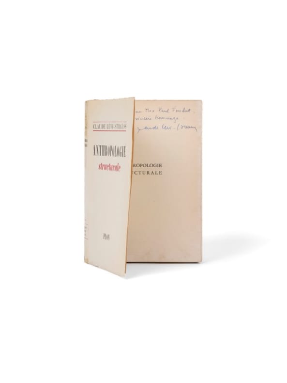 Manifeste fondamental du structuralisme : envoi à Max-Pol Fouchet Paris, Plon, [janvier] 1958. 1 vol. (140 x 200 mm) de 454 p. Broché. Édition originale. 13 planches hors texte et 23 illustrations in texte. Exemplaire imprimé du service de presse. Envoi signé : «À Monsieur Max-Pol Fouchet, en très sincère hommage, Claude Lévi-Strauss ».