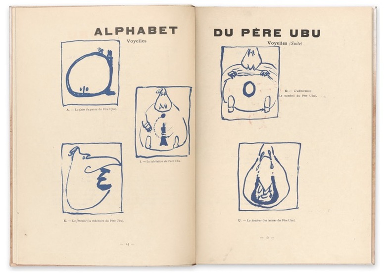 Illustrations en noir, bleu et rouge de Pierre Bonnard. Fac-similé de l'édition de 1901 au tirage limité à 1000 exemplaires non numérotés. Contient une deuxième version du Calendrier 'pataphysique qui, bien que concocté en 1901, n'entra en vigueur qu'en 1948 au sein du Collège de ’Pataphysique. Dada Global n° 206.