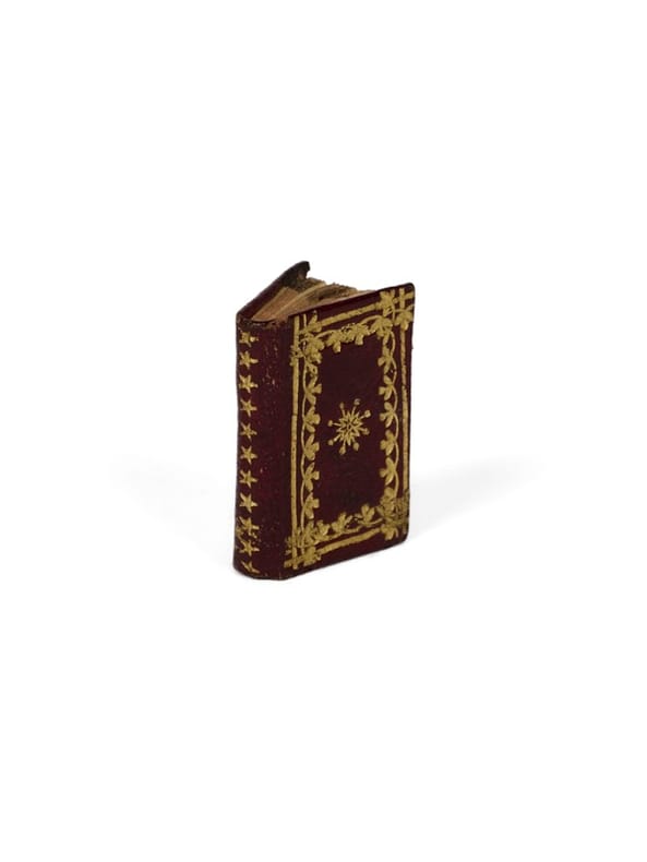 S.l., [Paris, Marcilly], 1830. 1 vol. in-64, maroquin rouge, dos lisse orné d'étoiles dorées alignées verticalement, encadrement de filets et roulettes dorées sur les plats, petit fleuron doré au centre, tranches dorées. Reliure de l'époque. 8 figures gravées à pleine page comprises dans la pagination, 63 pp., (1) p.