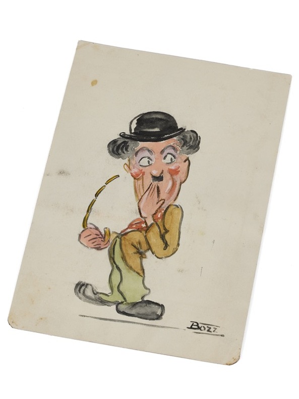 Dessin original signé [New York ou Paris, circa 1933]. 1 feuillet (120 x 180 mm). Encre et aquarelle. 1 dessin original en couleur, signé. Il représente Charlie Chaplin, à l'époque ou Robert Velter est à New York et se lance dans l'illustration et les croquis des auteurs et acteurs en vogue.