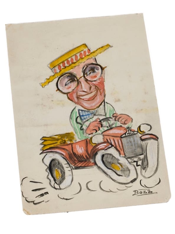 Dessin original [New York ou Paris, circa 1933]. 1 feuillet (120 x 180 mm). Encre et aquarelle. 1 dessin original en couleur, signé. Il représente Harold Lloyd, à l'époque ou Robert Velter est à New York et se lance dans l'illustration et les croquis des auteurs et acteurs en vogue.