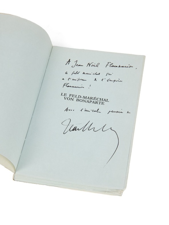 Paris, Flammarion, (juillet) 1996. 1 vol. (145 x 230 mm) de 180 p., 1, [1] et 4 f. Broché, non coupé. Édition originale. Un des 25 exemplaires d'auteur sur papier bleu, celui nominatif, justifié par l'auteur. Envoi signé : « À Jean-Noël Flammarion, ce petit maréchal qui a l'uniforme de l'Empire Flammarion ! Avec l'amicale pensée de Jean Dutourd ».