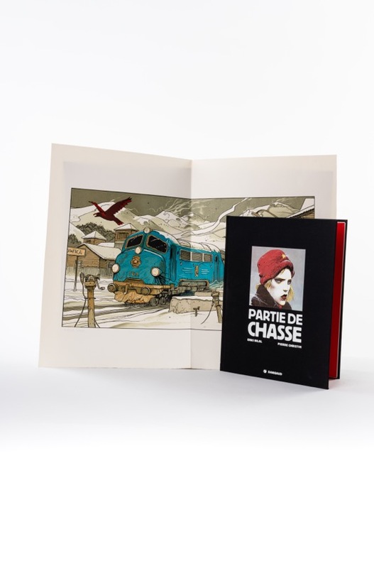 Avec sa lithographie signée et numérotée Paris, Dargaud, 1983. 1 vol. (245 x 320 mm) de 84 p. et [2] f. Cartonnage éditeur toile noire, orné d'une vignette contrecollée au premier plat, étui. Édition originale. Tirage de luxe à 1 300 exemplaires (n° 974), signés par les auteurs et enrichis d'une sérigraphie (625 x 460 mm) numérotée et signée.