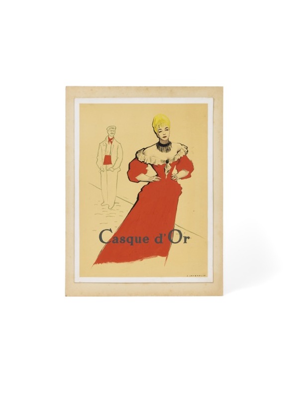 La façon originale, dont le projet de cette dernière affiche fut retenu, resta gravée dans la mémoire de son créateur : « Quand j'ai fait l'affiche de Casque d'or, je me suis inspiré de l'affiche de Toulouse-Lautrec, représentant May Belfort, en robe rouge (avec la tête de Simone Signoret). J'ai soumis cette maquette à Mounier qui m'a dit : «C'est tout ce que vous avez ? - Oui, c'est tout ce que j'ai. - C'est bizarre...» Et sans rien ajouter, manifestement déçu, il a jeté ma maquette dans son tiroir. Je suis parti pensant que mon projet ne serait pas retenu. Quelque temps plus tard, Becker est venu le voir, dans l'intention d'examiner les projets d'affiches pour son film, Mounier lui en a montré quelques-uns, qui n'étaient pas de moi. À son tour, Becker lui a demandé : «C'est tout ce que vous avez ? Alors en désespoir de cause, Mounier a sorti de son tiroir ma maquette, en lui disant : J'ai bien ça aussi, enfin... - C'est tout à fait ce qu'il me faut, a immédiatement répliqué Becker. C'est du Toulouse-Lautrec. C'est tout à fait dans l'esprit du film !» Mounier était sidéré. C'est Mounier lui-même, avec qui j'étais très lié, qui m'a raconté l'histoire. Le plus cocasse, c'est qu'il m'a alors demandé : «Mais il a fait des affiches, Toulouse-Lautrec ?» » (Forney, p. 24-25). Sur l'affiche définitive, Jean Jacquelin modifiera légèrement l'axe des deux capitales du titre, créant un effet de mouvement qui accompagne celui du visage dessiné en premier plan, celui de Simone Signoret. C'est à l'âge de dix ans que Jean Jacquelin découvre avec émerveillement les affiches Ripolin d'Eugène Vavasseur. Le natif de Paris intègre en 1920 l'école supérieure de dessin Germain Pilon, puis entre comme dessinateur dans l'agence de publicité TAP (Travaux artistiques de publicité). Directeur artistique de l'agence Step à partir de 1929, il réalise plusieurs affiches de cinéma à partir de 1940 tout en poursuivant ses activités de dessinateur publicitaire pour de nombreux secteurs : automobile (Peugeot, Delage, Simca, Buick, Fiat), énergétique (Antar, Esso, Shell), presse écrite et édition (Paris-Soir, L'Intransigeant, Éditions Froissart, Presses de la Cité), mode (Scandale, Magasin Le Printemps), distribution (Coop, Vittel, Brandt, Champagne Mercier) ou pour le secteur du tourisme, du voyage et des loisirs (Air France, SNCF, Aéropostale, Compagnie Transatlantique, Les Châteaux de la Loire, 24 heures du Mans, Semaine du cinéma, Casino d'Enghein). Son nom est célèbre pour avoir été l'illustrateur des jaquettes aux Presses de la Cité pour les romans de Georges Simenon (une trentaine de titres des années 1950 sont des compositions originales, qu'il exécute sous le contrôle et avec l'accord du romancier). Une grande exposition lui a été consacrée en 1993 à la Bibliothèque Forney, doublée d'un catalogue richement illustré (Jean Jacquelin affichiste et dessinateur publicitaire, 29 avril - 28 mai 1993).
