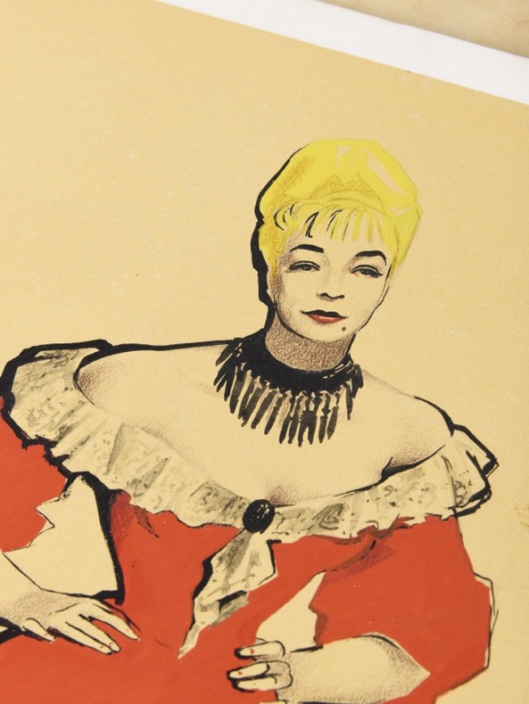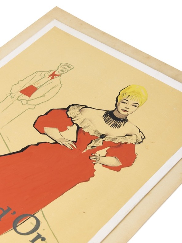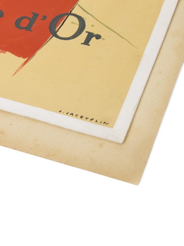 Maquette originale d'une des plus célèbres affiches du cinéma français d'après-guerre. [1952] Gouache, pastel et mine de plomb sur 1 bristol (260 x 350 mm) contrecollé sur carton fort (400 x 300 mm), signée en bas à droite « J. Jacquelin ». Tampon de l'atelier au dos. Maquette originale pour l’affiche du film de Jacques Becker avec Simone Signoret et Serge Reggiani.