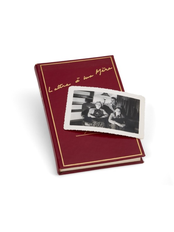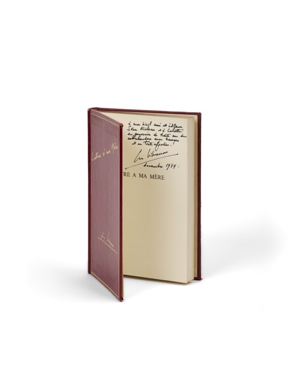 Editions Presses de la Cité 1974. In-8 cartonnage éditeur plein basane rouge de 122 pages au format 13,5 x 20,5 cm. Couverture et dos rond avec titre et signature gravés et dorés. Tête dorée. Un des 50 exemplaires, hors commerce sur vélin pur fil Lafuma, noté H.C, du tirage de tête. Maquette réalisée par Georges Simenon lui-même avec portrait en pied de sa mère en frontispice. Rare édition originale en tirage de tête et en superbe état de fraicheur de ce texte émouvant, dicté en quelques jours, trois ans après le décès d'Henriette Brüll, la mère de l'auteur. Emouvant exemplaire accompagné d'une magnifique dédicace de Georges Simenon à sa secrétaire Joyce Aitken : A la fidèle Aitken qui régnera encore sur mes livres et sur les diables d'éditeurs longtemps après que cela ne m'atteindra plus, avec toute ma confiance et mon affection. Novembre 1974. Le livre est accompagnée d'une photo originale en retirage argentique de l'auteur avec sa mère, au format 17,5 x 12,5 cm.