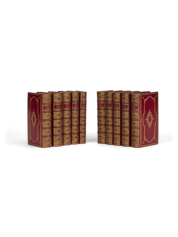 A Paris de l'imprimerie de Didot, Perlet, 1803-1804. 23 VOLUMES in-8, pleine basane racintée, guirlande dorée sur les plats, dos lisse richement ornénoièces de titre et de tomaison en maroquin noir, tranches mouchetées pleine basane racinée, guirlande dorée sur les plats, dos lisse richement orné pointillés dorés, pièces de titre et de tomaison en maroquin noir, tranches mouchetées. (Reliure de l'époque).