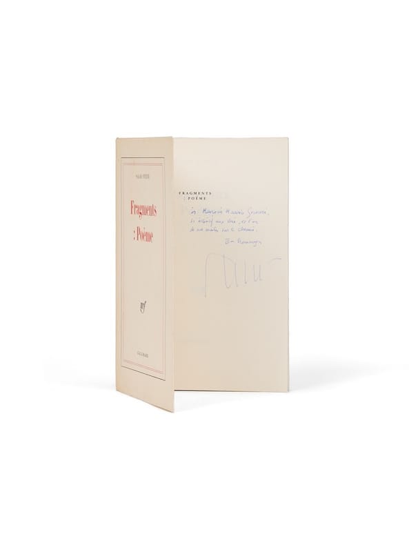 Envoi signé à Maurice Genevoix Paris, Gallimard, (3 février) 1978. 1 vol. (140 x 205 mm) de 106 p., [5], 1 et [1] f. Broché. Édition originale. Un des exemplaires numérotés sur bouffant Condat, celui-ci hors commerce (n° 2694). Envoi signé : « à Monsieur Maurice Genevoix, si attentif aux voix, et l'un de nos maîtres sur le chemin. En hommages, Salah Stétié».