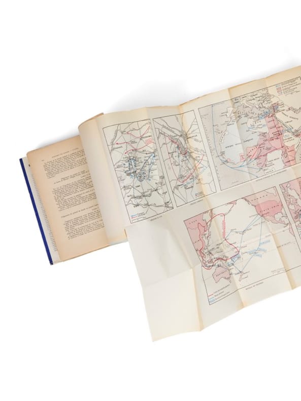 1963, Plon, Club français des bibliophiles, in-4 pleine toile kaki de 293, 359, 372, 239 et 301 pages, signets, médaillons gravés dorés au centre des 1ers plats des tomes Mémoires de guerre, nombreuses photographies noir et blanc, quelques unes en couleurs, cartes couleurs. Tome 1 : Mémoires de guerre, l'appel, 1940-1942, tome 2 : Mémoires de guerre, l'Unité, 1942-1944, tome 3 : Mémoires de guerre, le Salut 1944-1946 / Tome 1 : Oeuvres, la discorde chez l'ennemi, le fil de l'épée, Tome 2 : Oeuvres, vers l'armée de métier, la France et son armée. | Etat : Bon état général, rhodoïds abîmés avec manques (Ref.: G6749)