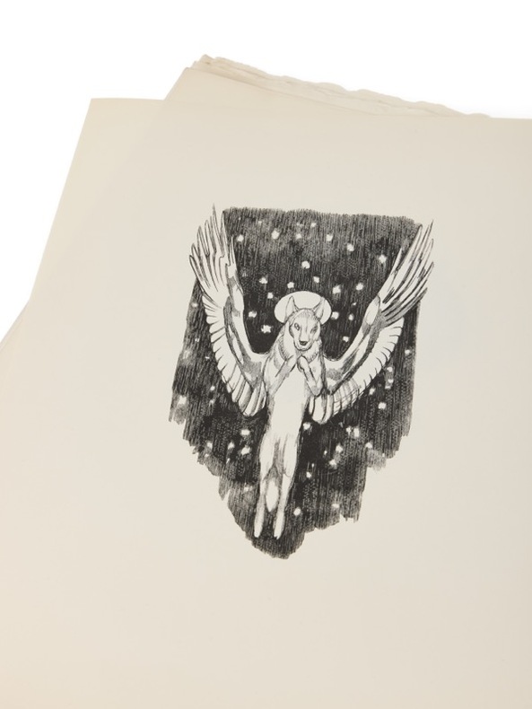 Exemplaire de tête, hors commerce : l'un des trois réservés à l'auteur et aux artistes. Paris, Editions Vialetay, (24 mars) 1958, pour le texte, (9 février) 1959, pour les gravures. Édition originale illustrée des bois de Paul Jouve, gravés par Jacques Beltrand d’après les dessins de l'artiste. Un des 25 exemplaires réservés aux collaborateurs, celui-ci marqué «exemplaire d'artiste» sur papier du Moulin Richard de Bas, signé par Genevoix, Jouve et Beltrand et enrichi de deux suites.