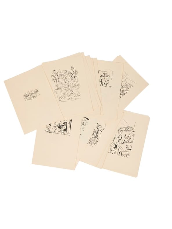 Le complément de Raboliot. Tirage unique à 41 exemplaires. Liège, Pierre Aelberts, (septembre) 1977. 1 vol. (195 x 280 mm) de 25 p. et 2 f. En feuilles, sous couverture illustrée. Édition originale. Illustrée d'un bois gravé de Dirk Valkenburg (1675- 1721). Tirage unique à 41 exemplaires. Un des 30 exemplaires sur vélin gris (n° 22).