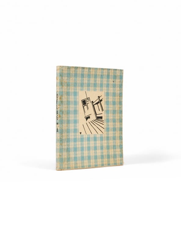 1941, aux dépens des O.P.G., in-4 cartonné de 76 pages, couverture à carreaux bleu ciel, dessins noir et blanc de Morel Fatio, exemplaire sur Vélin Réflex n°307/1800, | Etat : Assez bon état général, couverture un peu défraichie et tachée sur le 1er plat, pages 49 à 65 détachées, quelques rousseurs discrètes (Ref.: ref10780)