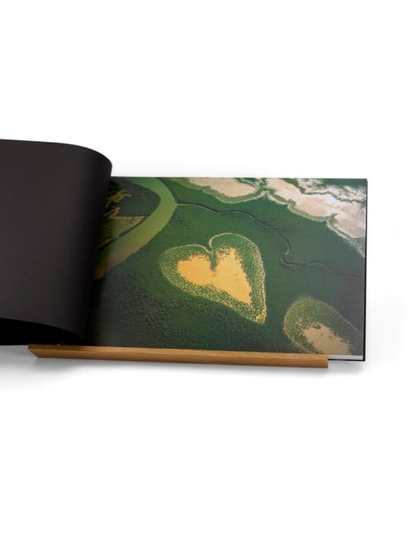 Exemplaire à l'état neuf, parfaitement conservé dans sa condition de parution avec son coffret et lutrin d'origine. Pour fêter les quinze ans des éditions de La Martinière, Yann Arthus-Bertrand signe ici un livre hors du commun en rééditant un choix parmi les photographies de La Terre vue du ciel : 115 clichés (dont une trentaine sont inédites) sont ainsi présentés sur une seule page, sans coupure, et pour la première fois visibles dans leur intégralité. Un lutrin de présentation en bois poncé permet de les découvrir «vues d'en haut». La Terre vue du ciel, le livre culte de Yann-Arthus Bertrand, a rencontré, à sa parution en 1999, un immense succès avec plus de 4 millions d'exemplaires vendus, distribués en vingt-quatre langues, avec des expositions itinérantes au quatre coins de la planète. Il s'agit du livre illustré le plus vendu de l'histoire, un livre pour lequel il avait hypothéqué sa maison, reconnaissant ensuite que ce succès avait changé sa vie - et celle de son éditeur. Etat de neuf.