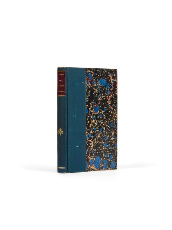 Edition originale, un des exemplaires du service de presse. Reliure en demi chagrin bordeaux à coins, dos à quatre nerfs soulignés de filets noirs, date dorée en queue, légères traces de décoloration sans gravité sur le dos et en marges des plats, plats de papier à effet doré, gardes et contreplats de papier marbré, couvertures et dos (restauré) conservés, tête dorée. Rare envoi autographe daté de Georges Duhamel et signé de son vrai patronyme : "A Paul Souday hommage dévoué. GDuhamel avril 1918." Notre exemplaire est enrichi d'une lettre autographe datée du 16 décembre 1918 de Goerges Duhamel, montée sur onglet, adressée à Paul Souday, qui n'est pas nommément cité, dans laquelle il évoque la joie et l'honneur qui a eu d'obtenir tout récemment le prix Goncourt(Civilisation 1914-1918 fut couronné le 11 décembre 1918) pour cet ouvrage : "... le prix Goncourt me fait plaisir, mais moins encore que les quelques cordiales poignées de mains que je reçois à cette occasion." Georges Duhamel déclare toute l'estime qu'il a pour son correspondant : "Vous m'avez déjà et très énergiquement témoigné votre sympathie. Soyez sûr que cette sympathie m'est chère. Et comme, en outre, elle m'est un guide précieux, je ferai tout ce que je pourrai pour la conserver et la mériter." - Photographies et détails sur www.Edition-Originale.com -