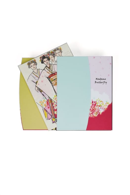 Les derniers costumes de Kenzo, pour Madame Butterfly [circa 2019]. 16 croquis originaux (210 x 280 mm), à l'encre, feutre, mine de plomb ou aquarelle. En feuilles, sous emboîtage à rabat signé de Julie Nadot. Exceptionnelle réunion de dessins originaux réalisés par Kenzo Takada pour les costumes de Madame Butterfly, ultime création artistique du couturier, donnée à l’Opéra Nikikai de Tokyo en 2019.