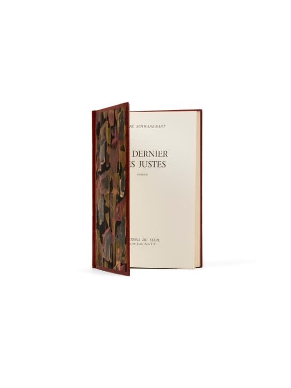 Prix Goncourt 1959. Récit monumental, Le Dernier des Justes retrace huit siècles de persécutions et de mémoire juive, des pogroms médiévaux jusqu'à Auschwitz. L'ouvrage s'ouvre sur la légende des trente-six Justes, figures mystiques qui, selon la tradition juive, portent le poids du monde. De génération en génération, Schwarz-Bart suit la lignée des Lévy, jusqu'à Érnie, enfant martyr de la Shoah, dernier maillon d'une histoire tragique. Saluer ce livre revenait pour l'Académie Goncourt à reconnaître la place de la Shoah dans la littérature universelle, moins de quinze ans après la fin de la guerre. Le choix fut d'autant plus marquant qu'il s'agissait du premier grand texte littéraire français sur l'extermination des Juifs. Le roman connut un retentissement international immédiat, traduit dans plus d'une quinzaine de langues, et valut à son auteur une célébrité fulgurante. Mais ce succès s'accompagna d'une violente polémique. Comme Roger Ikor quelques années plus tôt, Schwarz-Bart fut critiqué dans une partie de la presse juive pour sa représentation de la mémoire et de l'identité juives. La revue Targoum et d'autres voix l'accusèrent d'instrumentaliser la souffrance, voire de simplifier à l'excès l'histoire. L'écrivain, blessé, se retira progressivement de la vie littéraire française, choisissant l'exil silencieux plutôt que la dispute. Un livre à la croisée de l'histoire et de la mémoire. Schwarz-Bart mêle l'héritage mystique et religieux à la reconstitution historique, dans une langue à la fois limpide et incantatoire. Par la figure du « dernier des Justes », il place l'enfant d'Auschwitz dans une continuité séculaire, reliant la mémoire de la Shoah à celle de toutes les persécutions juives. Les Goncourt 1955 et 1959 forment ainsi un diptyque paradoxal : consacrés par l'institution littéraire, leurs auteurs furent contestés dans le champ même dont ils entendaient porter la voix. Mais en inscrivant dans le palmarès du prix les thèmes de l'assimilation (Ikor) et de l'extermination (Schwarz-Bart), l'Académie fit entrer au coeur du roman français deux des enjeux mémoriels les plus vifs du XXᵉ siècle. Précieux exemplaire de tête sur vélin neige, l'un des 15 seuls imprimés.