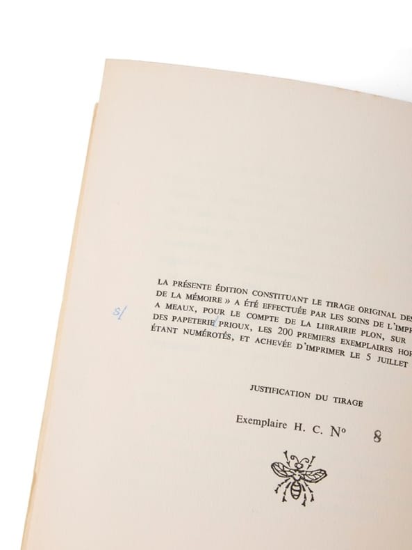 Exemplaire pour sa femme, Madeleine Paris, Plon, (5 juillet) 1965. 1 vol. (165 x 210 mm) non paginé. Broché, non coupé. Édition originale Un des 200 premiers exemplaires hors commerce sur vélin (n° 8). Envoi signé : «Pour ma chère Madeleine, première éditrice de ce texte, et pour une larme qui m'a donné confiance. Maurice, 1965».