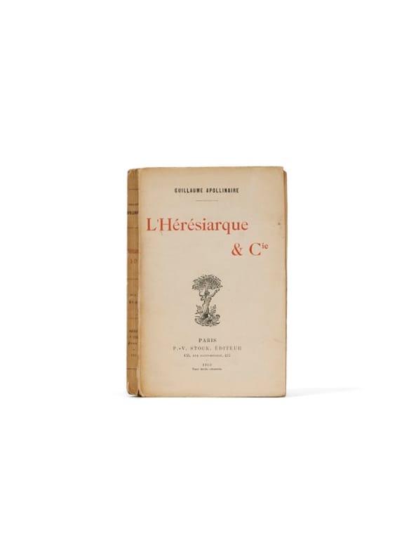 ''À la fin du XIXème siècle, un refrain populaire inspire au prêtre Benedetto Orfei l'hérésie des Trois-Vies: " Ils étaient trois hommes / Sur le Golgotha / De même qu'au ciel/Ils sont en Trinité. " Pour Benedetto, les deux larrons deviennent Dieu le Père et le Saint-Esprit. Il est excommunié et passe sa vie entre les châtiments corporels qu'il s'inflige et la plus grande sensualité. " La vérité, conclut Apollinaire, est que l'hérésiarque était pareil à tous les hommes, car tous sont à la fois pécheurs et saints, quand ils ne sont pas criminels et martyrs. " L'Hérésiarque et Cie est sans doute un des textes en prose les plus aboutit de celui qui a conduit la poésie moderne " aux frontières de l'illimité et de l'avenir ". Légères plissures affectant dos et plats. Papier légèrement jauni. Plissure angulaire dans le corps d'ouvrage. Du reste, bonne condition.
