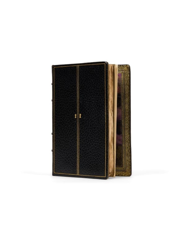 Admirable reliure parlante de Van West Paris, Mercure de France, (12 juin) 1909. 1 vol. (110 x 165 mm) de 273 p. et [1] f. Maroquin ébène, plats figurant une porte, décor composé d'un jeu de filets dorés et de deux petits fers, dos à nerfs, titre doré, date en pied, double filet sur les coupes, tête dorée, large dentelle intérieure, couvertures et dos conservés (reliure signée de J. Van-West). Édition originale. Un des 300 exemplaires sur vergé d'Arches. Montée en tête : lettre autographe signée adressée à R. L. Doyon