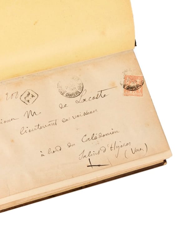 «Mon cher ami, Je vous savais déjà sur le Bugeaud, car j'étais allé il y a quelques jours à Rochefonts et, moins oublieux que vous pensez, j'avais de suite envoyé demander à la Préfecture si par hasard vous étiez là. Certainement, vous recevrez Ramuntcho, le livre. Quant à Ramuntcho, le vrai, c'est un joli et vigoureux bébé de bientôt deux ans, qui parle le Basque et habite pour le moment St Jean-de-Luz. Je ne sais pas combien de temps je resterais à Hendaye, ni ce que je ferai ensuite, je suis sans projets, comme sans courage. Je vous serre de tout coeur la main. P. Loti. Oui, envoyez-moi cet intéressant opuscule, quand vous y penserez. » Exemplaire de dédicataire idéal, à son cadet de l'École Navale et ami, Maurice de Lacoste. Il lui adresse, à bord du navire Calédonien qui mouille au Salins d'Hyères, cet exemplaire de son roman majeur du « cycle basque », entrepris par Loti après ses affectations sur la Bidassoa. Ramuntcho transpose, dans un Pays basque encore perçu comme un « ailleurs », l'apprentissage d'un jeune joueur de pelote devenu contrebandier, ses amours avec Gracieuse, puis l'épreuve d'une séparation et le heurt avec un catholicisme de fer qui culmine dans le projet d'enlèvement manqué depuis le couvent. Publié d'abord en feuilleton dans La Revue de Paris (15 décembre 1896 - 15 février 1897), le texte paraît la même année chez Calmann-Lévy. À rebours du strict carnet de route, Loti y privilégie la fiction « objective » et la scénographie des paysages intérieurs, nourris des séjours d'Hendaye et de Saint-Jean-de-Luz qui fixent durablement l'imaginaire basque fin-de-siècle. La lettre jointe situe précisément l'auteur au moment de la mise en volume, juste après la fin des feuilletons qui se terminent en février. Et confie à son destinataire un point essentiel, où Loti précise la genèse fictive et « réelle » du héros, entre le roman qui sort de presse et l'enfant basque auquel il emprunte le prénom : le propre fils de Pierre Loti. il faut rappeler que « Ramuntcho » n'est pas qu'un héros de fiction. Au Pays basque, Loti entretient - en marge de sa vie officielle - une relation durable avec Juana Josefa Cruz Gainza, dite Crucita. Pour s'en rapprocher, il loue à Hendaye la maison Bachar-Etchea, dite « la maison solitaire », que Crucita n'habite jamais car dès la conclusion de sa liaison et de son « contrat » avec Loti, il l'emmène à Rochefort, pour l'installer dans une maison des faubourgs de la ville. Elle lui donna quatre fils non reconnus, tous nés au Pays Basque. Le premier, Raymond, né dans la nuit du 29 au 30 juin 1895, est couramment désigné comme « Ramuntcho » et a souvent été tenu pour l'inspiration directe du titre et du personnage du roman. Cette filiation parallèle, longtemps tue, est ici confirmée par un Loti confiant dans l'amitié et la confidence d'un secret à son ami, Maurice de Lacoste. Natif de Metz en 1864, ce dernier entre à l'école navale en 1882 - quinze ans après Loti. Aspirant de 1ere classe en octobre 1885, il est tout d'abord affecté dans la division navale d'Extrême-Orient. C'est lors de ces premières traversées qu'il rencontre Pierre Loti, qui navigue dans ces mers depuis la même année à bord du Mytho, l'un des onze transports officiels des forces navales en Extrême-Orient. C'est sur ce navire, durant un mois un mois de traversée, que Loti a rédigé en partie le manuscrit de Pêcheur d'Islande. Lacoste est promu enseigne de vaisseau en octobre 1887, servant à bord d'innombrables bâtiments de la Marine française. Promu lieutenant de vaisseau en octobre 1893, il est successivement affecté sur plusieurs cuirassés puis croiseurs, les fers de lance de la Marine et les plus puissants des navires de guerre de l'époque. Il sera affecté ensuite à la direction centrale de l'artillerie navale, puis capitaine de frégate avant d'être affecté à l'état major en 1909. Leur amitié ne sera jamais entachée et durera jusqu'à la mort de Loti, en 1923.
