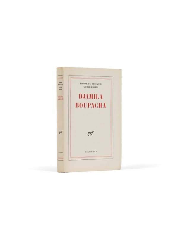 Livre-document au coeur de la bataille juridique et morale des dernières années de la guerre d'Algérie, il naît de la rencontre entre Gisèle Halimi et Simone de Beauvoir autour du cas de Djamila Boupacha, jeune dactylographe de 22 ans, militante du FLN, arrêtée dans la nuit du 10 au 11 février 1960 et inculpée pour un engin déposé en septembre 1959 à la Brasserie de la Faculté d'Alger (bombe repérée et désamorcée, sans victime). Entre l'arrestation et la présentation au juge (15 mars), Djamila est torturée et violée au centre de Hussein Dey, ce qui arrache des « aveux ». Halimi, avocate au barreau de Paris, prend la défense en mai 1960 (premier entretien à Barberousse, 17 mai 1960) et construit une stratégie publique : faire établir les sévices (électricité, brûlures, viol instrumentalisé) pour révoquer les aveux, éviter la peine de mort et poursuivre les auteurs. Elle rallie Simone de Beauvoir, qui publie dans Le Monde le 2 juin 1960 la tribune « Pour Djamila Boupacha », déclencheur d'un comité de soutien réunissant notamment Jean-Paul Sartre, Louis Aragon, Elsa Triolet, Gabriel Marcel, Geneviève de Gaulle, Aimé Césaire, Germaine Tillion. L'offensive obtient des décisions alors exceptionnelles : dessaisissement du tribunal militaire d'Alger au profit du parquet de Caen et transfert de la détenue en France. L'ouvrage qui paraît en février 1962 rassemble le récit de Beauvoir et Halimi, augmenté de pièces et témoignages (Henri Alleg, Mme Maurice Audin, général de Bollardière, R.P. Chenu, Dr Jean Dalsace, J. Fonlupt-Esperaber, Françoise Mallet-Joris, Daniel Mayer, André Philip, J.-F. Revel, Jules Roy, Françoise Sagan), et s'ouvre sur le portrait au fusain de Djamila dessiné par Picasso en décembre 1961, demandé par Halimi d'après photographie, devenu le frontispice du volume. Trois mois plus tard, à la suite des accords d'Évian, Djamila Boupacha est libérée le 24 mai 1962, sans avoir été jugée. Un texte cardinal de l'anti-torture et du féminisme naissant.