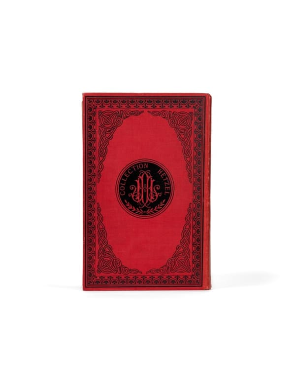 Premier cartonnage du titre Paris, Collection Hetzel, [1894]. 1 vol. (185 x 280 mm) de 420 p. + catalogue. Percaline rouge polychrome de l'éditeur, ornée d'un motif dit «au portrait collé». Premier cartonnage, au portrait collé. 78 illustrations de Georges Roux, dont 5 gravures monochromes, 12 hors texte et 2 cartes en couleurs.