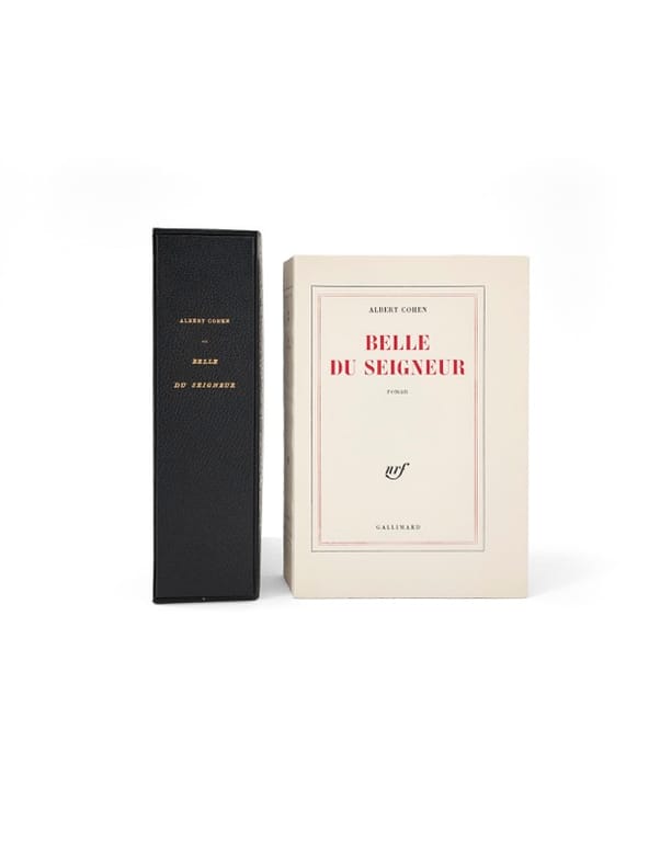 Belle du Seigneur, considéré comme l'anti-roman d'amour le plus marquant de la littérature francophone du vingtième siècle, constitue un réquisitoire sans pitié contre l'amour-passion : les héros, Solal et Ariane, étouffent dans la passion parfaite qu'ils ont imaginée et dont ils jouent le rôle. Le roman rompt un silence de quatorze ans (Le Livre de ma mère paraît en 1954) pour revenir à Solal et Mangeclous et transformer l'élan ironique des deux oeuvres publiées en 1930 et 1938 en une tragédie amoureuse qui viendra clôre la satire dans la mémoire disaporique et familiale. Belle du Seigneur en est l'élément central : « Quel morceau, Quel monstre ! 845 pages, 32 francs et à peu près autant d'heures de lecture : on est terrorisé... On tente pourtant l'aventure. On plonge dans l'énorme histoire : alors le mécanisme joue et l'on est piégé. Des beautés éclatantes, des torrents de mauvais goût : on est emporté par l'un, ébloui par les autres. On sort de là un peu stupéfait, la tête vide, mais soyons francs : le jeu en valait la chandelle». (François Nourissier, Les Nouvelles Littéraires, septembre 1968). Très bel exemplaire, tel que paru, entièrement non coupé.