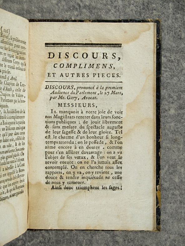 A Paris, Chez Vente, (1775). Nine works bound in one volume. 82 pp.; 43, (1) pp.; 208 pp.; 26 pp.; 55, (1) pp.; 4 pp.; 27, (1) pp.; 8 pp.; 57, (1) pp. 8vo. Contemporary marbled calf, spine richly gilt with raised bands, label with gilt lettering, red edges. 1: Conlon 75:1685.First edition. 2: INED 4292; not in Kress; not in Goldsmiths; not in Higgs.First edition.'Apocryphe. .... Pour servir de suite à la Correspondance secrète et familière de M. de Maupeou avec M. de Sor***, par Pidansat de Mairobert. Lettre apocryphe attaquant Maupeou et la politique financière de Turgot. Allusion à un mémoire sur l'emploi des biens ecclésiastiques suivant le voeu de l'Église primitive' (INED). 3: Conlon 75:311, 167 pages only.4: Conlon 75:1002 (edition in 4to of 11 pages).5: Conlon 74:688.6: Not in Conlon.7: Conlon 71:587.First edition.Dated at end: 5 Juin 1771.8: Conlon 71:167.First edition.Declaration of 15 March, 1771.9: Conlon 75:453 (4to edition of 26 pages.)