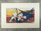 PARIS. PHILIPPE LEBAUD ÉDITEUR - CLUB DU LIVRE - SPADEM ET HÉRITIERS DE PICASSO. 1990. GRAND IN-FOLIO (63 X 42 X 8 CENTIMÈTRES ENVIRON) DE 36 PAGES + 31 PLANCHES, SOUS EMBOITAGE TOILE BLEUE DE L'ÉDITEUR, ILLUSTRÉ D'UNE REPRODUCTION EN COULEURS DE PICASSO SUR LE PLAT SUPÉRIEUR, TITRE EN BLANC. ILLUSTRÉ DE 42 ÉTUDES PRÉLIMINAIRES EN NOIR ET EN COULEURS, REPRODUITES EN FAC-SIMILÉ, RÉPARTIES SUR 31 PLANCHES SOUS PASSE PARTOUT. ACCOMPAGNÉ D'UNE GRANDE NOTICE DE 36 PAGES COMMENTANT CHAQUE ILLUSTRATION. PREMIER TIRAGE LIMITÉ A 1967 EXEMPLAIRES NUMÉROTÉS DE 1 À 1937 ET DE I À XXX POUR LES COLLABORATEURS, CELUI-CI PORTANT LE NUMÉRO 706. DEFAUTS, SURTOUT EXTERIEURS : FROTTEMENTS, TACHES A L’EMBOITAGE ET RENFORT A UN ANGLE. TOUT PETIT PRIX COMPTE TENU DES DEFAUTS SIGNALES.