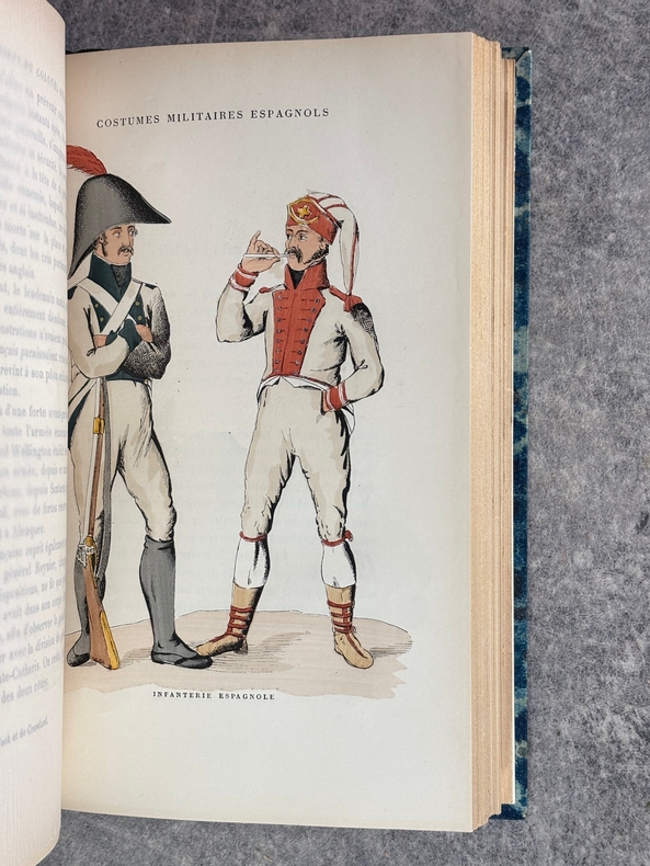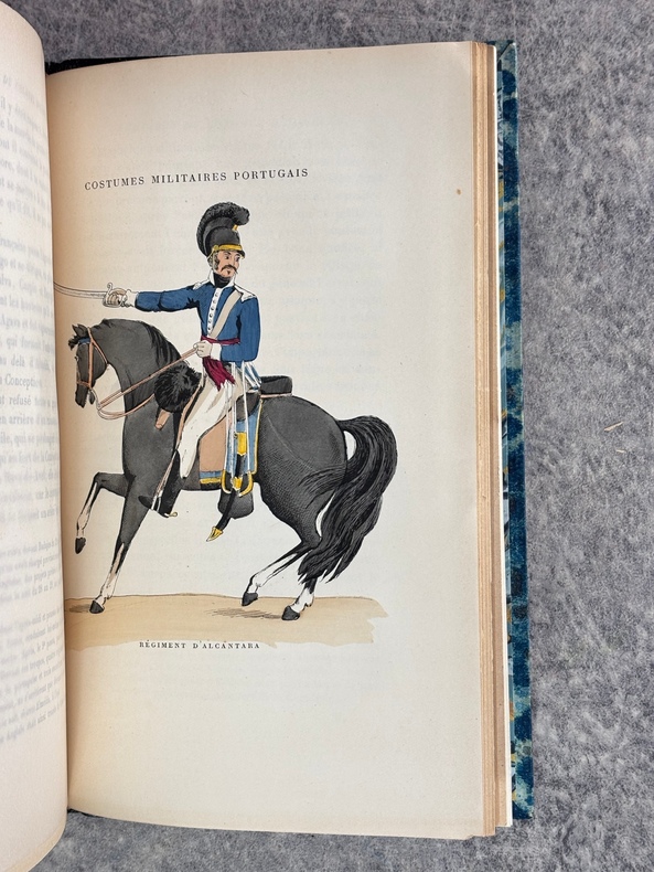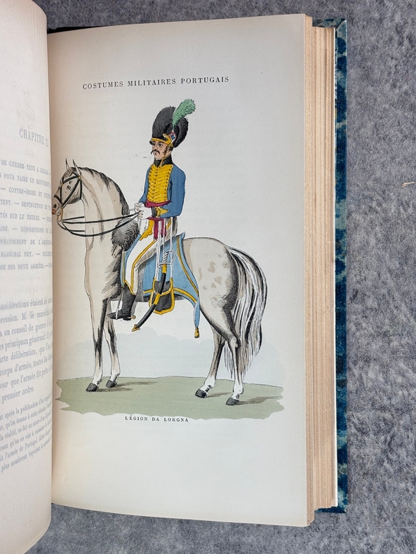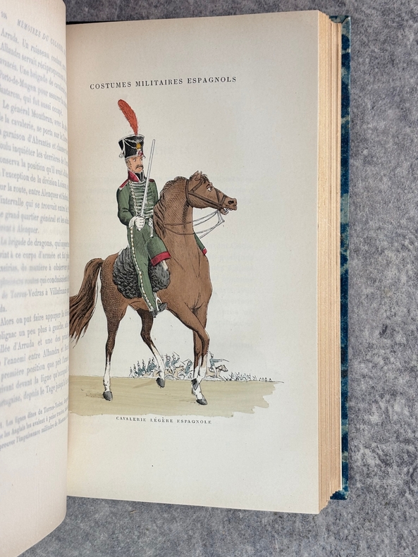 PARIS. LIBRAIRIE CH. DELAGRAVE. SANS DATE. (1902). IN-8 (15 X 23 X 3,5 CENTIMETRES ENVIRON) DE 256 PAGES, RELIURE MODERNE 1/2 CHAGRIN NOIR, DOS A CINQ NERFS, TITRE DORE, COUVERTURE IMPRIMEE CONSERVEE. ILLUSTRE DE 12 PLANCHES HORS TEXTE SOUS SERPENTE, 8 D'UNIFORMES ESPAGNOLS ET PORTUGAIS EN COULEURS, ET QUATRE DE PORTRAITS EN NOIR. AVEC UNE GRANDE CARTE REPLIEE IN-FINE. «INTERESSANTE RELATION DES OPERATIONS AU PORTUGAL EN 1810 ET DE L'ECHEC DE L'OFFENSIVE FRANCAISE A TORRES VEDRAS.» EDITION ORIGINALE. (TULARD. 410). PETITS MANQUES DE PAPIER EN MARGE INTÉRIEURE DES PAGES 15/16 ET 17/18 AVEC UNE LÉGÈRE ATTEINTE AU TEXTE, SINON TRES BEL EXEMPLAIRE DE CES RARES MEMOIRES D'EMPIRE.
