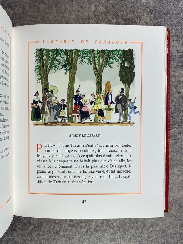 PARIS 6°. EDITIONS D'ART LES HEURES CLAIRES. 1977-1981. 3 TOMES EN 3 VOLUMES PETIT IN-4 (20,5 X 25,5 X 17 CENTIMETRES ENVIRON) DE 267 + 245 ET 189 PAGES, RELIURE DE L'EDITEUR A LA BRADEL PLEIN MAROQUIN MOSAIQUE ROUGE, ROUGE FONCE ET ORANGE, TITRE ET TETE DORES, SOUS ETUI BORDE. ILLUSTRE DE 48 BELLES MINIATURES GRAVEES SUR BOIS EN COULEURS ET DE 66 VIGNETTES TIREES EN GRIS. PREMIER TIRAGE, LIMITE A 3650 EXEMPLAIRES NUMEROTES, TOUS SUR GRAND VELIN DE RIVES. UN DES 2952 COMPORTANT LES ILLUSTRATIONS DANS LEUR ETAT DEFINITIF, CELUI-CI PORTANT LE NUMERO 3529. PETITES TRACES DE FROTTEMENT SUR UN ETUI, SINON BEL EXEMPLAIRE.