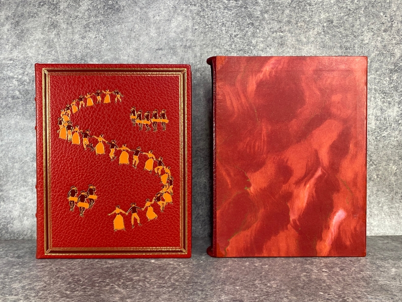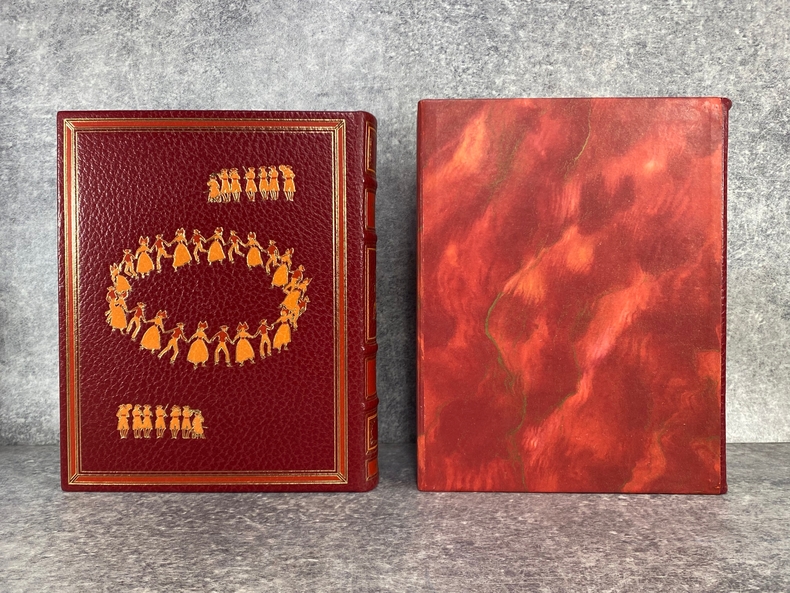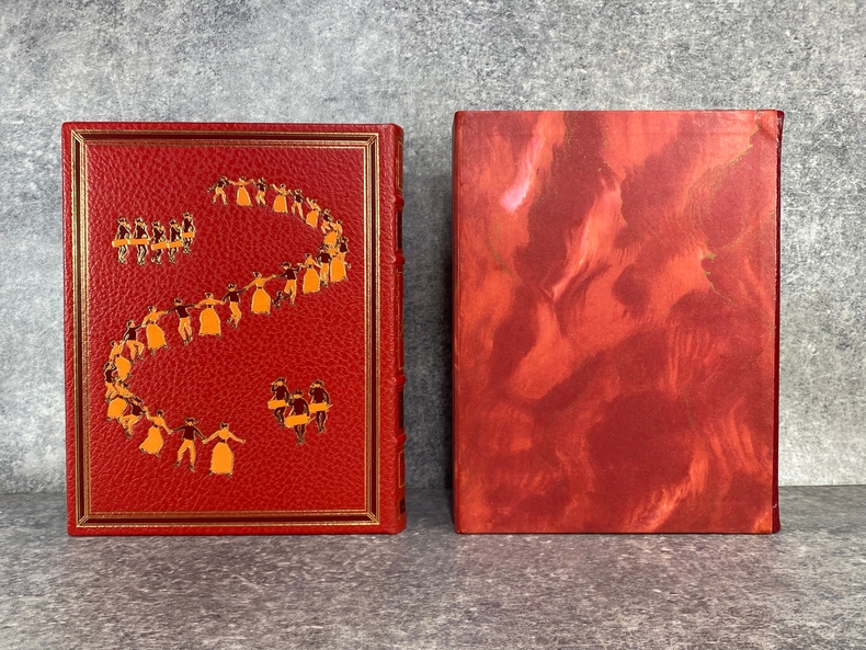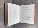 PARIS 6°. EDITIONS D'ART LES HEURES CLAIRES. 1977-1981. 3 TOMES EN 3 VOLUMES PETIT IN-4 (20,5 X 25,5 X 17 CENTIMETRES ENVIRON) DE 267 + 245 ET 189 PAGES, RELIURE DE L'EDITEUR A LA BRADEL PLEIN MAROQUIN MOSAIQUE ROUGE, ROUGE FONCE ET ORANGE, TITRE ET TETE DORES, SOUS ETUI BORDE. ILLUSTRE DE 48 BELLES MINIATURES GRAVEES SUR BOIS EN COULEURS ET DE 66 VIGNETTES TIREES EN GRIS. PREMIER TIRAGE, LIMITE A 3650 EXEMPLAIRES NUMEROTES, TOUS SUR GRAND VELIN DE RIVES. UN DES 2952 COMPORTANT LES ILLUSTRATIONS DANS LEUR ETAT DEFINITIF, CELUI-CI PORTANT LE NUMERO 3065. TRES BEL EXEMPLAIRE.