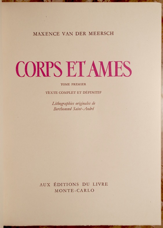 Monte-Carlo, Aux éditions du Livre, impr. Presses de l’Imprimerie Centrale de Lausanne 1948 2 volumes. In-8. Reliures demi-peau maroquinée rouge à coins, couvertures et dos conservés, dos à nerfs, têtes dorées, 396-358 pp., 22 lithographies originales de Berthommé Saint-André. Reliures légèrement frottées. Un coin épidermé.