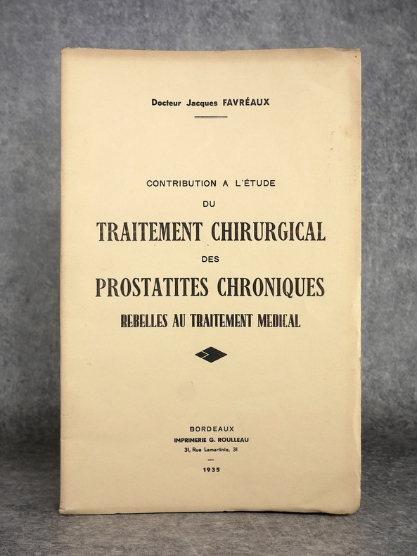 BORDEAUX. IMPRIMERIE G. ROULLEAU. 1935. BROCHURE IN-8 (16,5 X 25,5 CENTIMETRES ENVIRON) DE 51 + (1) PAGES, COUVERTURE CREME, TITRE IMPRIME EN NOIR. ENVOI D'AUTEUR SIGNE : "AU DOCTEUR BATLLE, CORDIAL SOUVENIR DE SON COUSIN. DR J. FAVREAUX". BON EXEMPLAIRE.