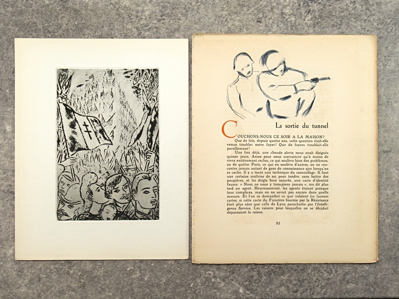 COLLECTIF, Général KOENIG (préface), ELUARD P. , VALERY P. , COLETTE, BILLY A. , ARNOUX A., AVELINE C. , BERNARD J.-J., LAUNAY P.-J., VILDRAC C., CALLANDER H. (textes), DARAGNES, PICASSO, TOUCHAGUES, DIGNIMONT (eaux-fortes, gravure au burin)