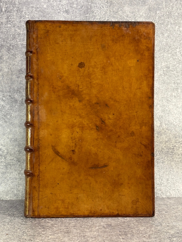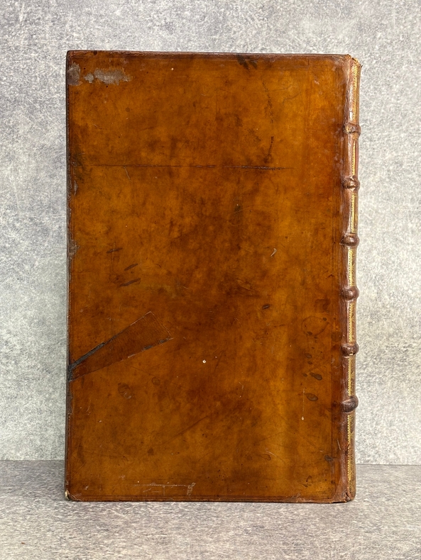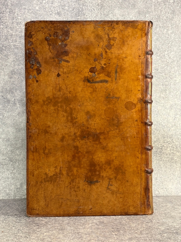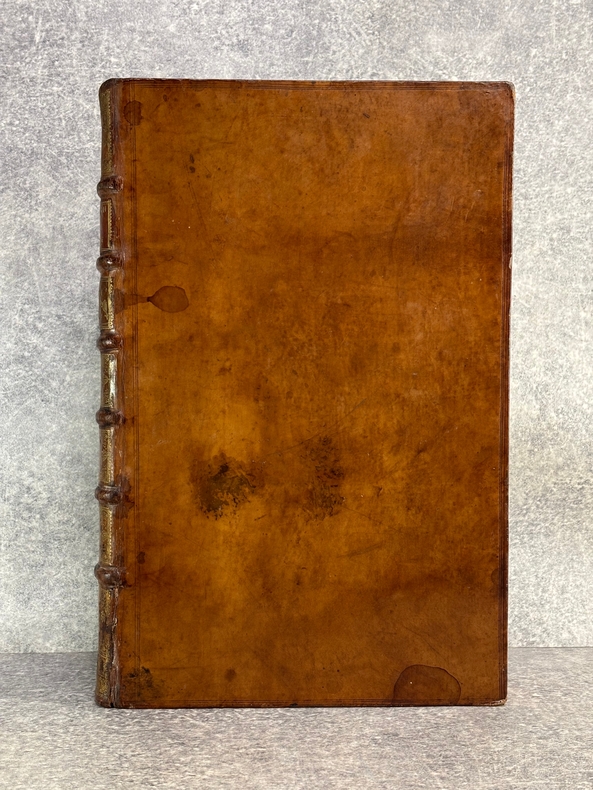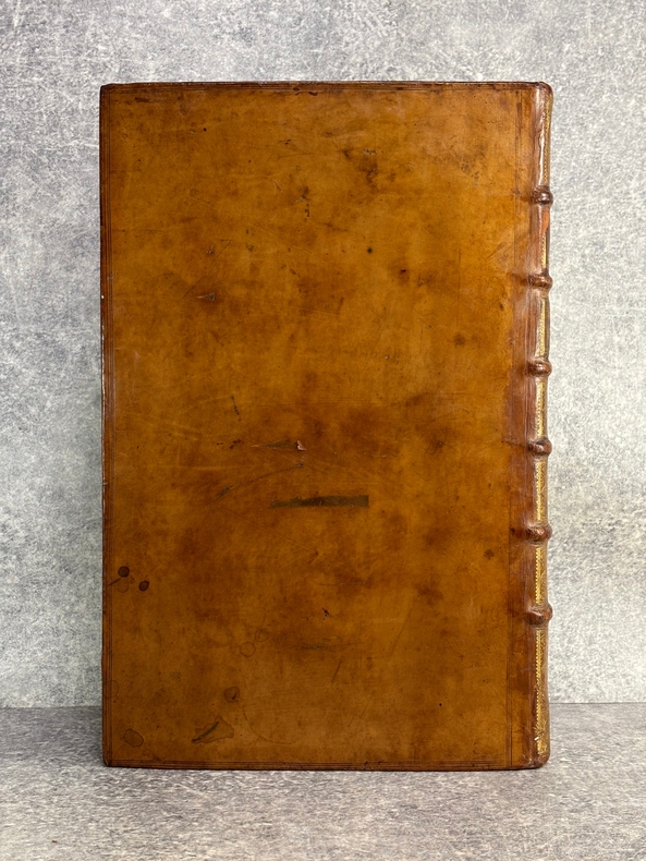 A AMSTERDAM. CHEZ P. BRUNEL, R. & J. WETSTEIN & G. SMITH. H. WAESBERGE, P. HUMBERT, F. HONORE. Z. CHATELAIN, & P. MORTIER. A LEIDE. CHEZ SAMUEL LUCHTMANS. 1730. 4 TOMES EN 4 FORTS VOLUMES IN-FOLIO (27,5 X 41,5 X 26,5 CENTIMETRES ENVIRON) DE (14) + CXVI + 719, (4) + 915, (4) + 831 ET (4) + 804 PAGES, RELIURE D'EPOQUE PLEIN VEAU MARBRE HAVANE, DOS A SIX NERFS ORNE DE CAISSONS A FLEURONS DORES, TITRE DORE SUR ETIQUETTE MAROQUIN HAVANE, TRANCHES ROUGES. ILLUSTRE D'UN GRAND FLEURON-VIGNETTE SUR LE TITRE, IMPRIME EN ROUGE ET EN NOIR, DESSINE PAR A. VAN DER WERFF, GRAVE PAR G. W. GOUWEN, REPETE DANS CHACUN DES 4 VOLUMES; D'UNE TRES BELLE VIGNETTE DESSINEE ET GRAVEE PAR B. PICART SUR LE FEUILLET DE DEDICACE AU DUC D'ORLEANS REGENT DE FRANCE. BIEN COMPLET DE LA DOUBLE LECON CONCERNANT DAVID ROI DES JUIFS, PAGES 908-913 DU TOME SECOND. (BRUNET. I. 712). LE FEUILLET DE PRIVILEGE EST EN HOLLANDAIS. QUELQUES DEFAUTS EXTERIEURS, DONT COIFFES, CHARNIERES, QUELQUES TRACES D’HUMIDITE ANCIENNES, QUELQUES PETITS MANQUES DE CUIR, SINON BON EXEMPLAIRE. PRIX ETABLI EN FONCTION DES DEFAUTS SIGNALES.